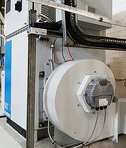 EC电机可以通过压力传感器或手动电位器控制(0-10vdc或4-20mA),控制范围在0-100%之间(无需感应)。使用EC风机升级原装的3kW电机的旧风机;通过升级,可以为英国制糖公司提供相同的风量和静压,耗电量仅为1.6kW!