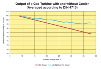 通过与金莎官方网站js93合作,为燃气涡轮发电机主进气口提供蒸发预冷却方案。该装置安装在发电机主进气口百叶窗上,节省成本的同时满足了冷却需求,无压力损失和腐蚀等对出风的不良影响。通过燃气轮机入口上游的金莎官方网站js93冷却介质,以受控速率向出风加湿。入口空气流经该冷却介质,水经蒸发变成冷蒸汽,冷却流经涡轮机的空气,以提高输出功率和运行效率。
